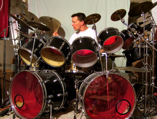 For sale: Pearl, Tama, Ludwig, Zildjian, Sabian Drum Kitsn:??????, built ????This kit is a combination of Pearl and Tama, plus others. Mostly black, currently with red Evans Hydraulic skins. Toms: Pearl 6x5.5, Tama 8x5.5, Tama 10x6.5, Tama 12x8, Pearl 12x8, Pearl 13x9, Pearl 15x12, Ludwig 18x15, Pearl Export 12x10, Pearl Export 13x11. Snares: Ludwig 14x6.5 Brass, Ludwig 14x5. Kicks: Tama 22x16 wood, Pearl 22x16 fibreglass. Tama Octobans: 6x11, 6x12, 6x13.5, 6x15.5. Timbales: Meinl 14x6.5, Meinl 15x6.5. Cymbals: Zildjian 10" crash, Sabian 18" extra thin crash, Zildjian 13" crash, Sabian 20" light ride, Sabian 14" sizzle hi-hats, Sabian 8" splash, Sabian 8" china splash, 11.5" crash, Sabian 8" splash (cracked bell), Zildjian 16" splash, Zildjian 16" china boy high, Zildjian 14" crash, 13" crash, Zildjian 22" ping ride, 13" crash, Zilco 18" crash, 16" Turkish crash. Temple blocks: 6x4.5, 5.5x4, 5x4, 4.5x4, 4x3.5. Bells, etc: LP 8.5x5 cowbell, Meinl 8x5 cowbell, LP 5x4 cowbell, LP 6 + 4.5. bell, glockenspiel. Many stands, clamps, hardware, etc. Cases: Kick drum, percussion, hard snare case, hard cymbal case, soft cymbal case. |