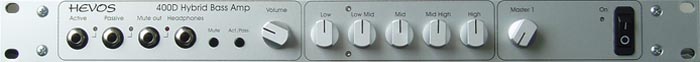 For sale: Hevos 400D bass amplifiersn:#0538/0269A042, built 2006This was my demo model. Very clear-sounding professional bass amplifier with a tube preamp (double triode 12AX7) and a MOSFET class-D power amp, built from top-quality components. There is no pop or thump when turning the unit on or off. One rack unit high (1.75"), with toroidal power transformer. The amplifier produces hardly any heat, so there's no cooling fan.